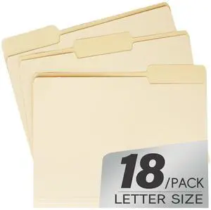 18 Pack Manila 1/3 File Folders,1/3 Cut Tab Letter Size,Great for Organizing and Easy File Storage,Per Box
