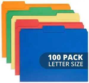 Sturdy File Folders with Reinforced Tabs for Filing and Organization, 1/3-Cut Tab, Assorted Positions, Letter Size, 8.5x11 inches, Manila, 100-Pack