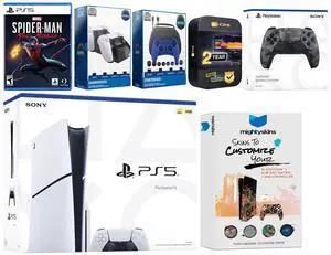 Sony Playstation 5 Slim Disc with Spider-Man: Miles Morales, Extra Midnight Black Controller, Gamer Kit, Charge Dock and MightySkins Decal Voucher + 2 Year CPS Extended Warranty