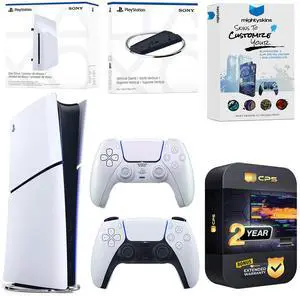 Sony PlayStation 5 Slim Digital Bundle with Disc Drive, Vertical Stand, MightySkins Voucher, and 1 Year Extended Warranty