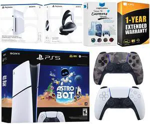 Sony PlayStation 5 Slim Digital Astro Bot Bundle with Disc Drive, Extra Controller, Pulse Elite Headset, MightySkins Voucher and 1 Year Extended Warranty - Gray Camo