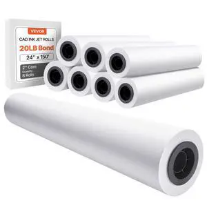 VEVOR Wide Format Paper, 24 in x 150 ft Plotter Roll, 2 Rolls CAD Bond Rolls with 2 in Core, 20 LB Bond Paper Rolls, Ideal for CAD Drawings, Engineering Plans, GIS Maps, and Architectural Designs