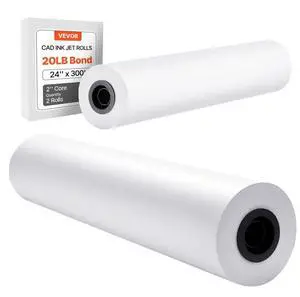VEVOR Wide Format Paper, 24 in x 300 ft Plotter Roll, 2 Rolls CAD Bond Rolls with 2 in Core, 20 LB Bond Paper Rolls, Ideal for CAD Drawings, Engineering Plans, GIS Maps, and Architectural Designs
