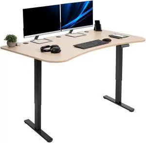 VIVO Electric 63 x 32 Stand Up Desk, Light Wood Table Top, Black Frame