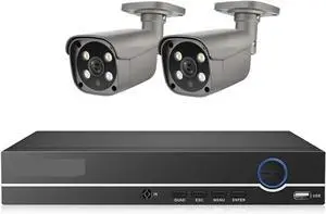 DVR Surveillance Kits, 8CH 5MP Security Video Surveillance Kit Color Night Vision Outdoor Waterproof CCTV System POE IP Camera Two Way(None,8CH NVR (2Cameras))