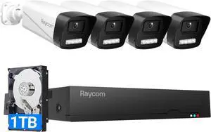Rraycom Home Security Camera System,4pcs H.265 3MP Wired PoE IP Cameras Outdoor with Spotlight&Motion Detection,Two-Way Audio,Waterproof,4K NVR with 1TB HDD for 24-7 Recording,No Monthly Fee