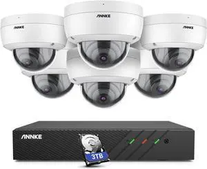 ANNKE 8CH Dome PoE Security Camera System with 6MP H.265+ NVR, 6 X 5MP Outdoor IP Camera, Audio Recording, 100ft EXIR 2.0 Night Vision, IP67 Weatherproof, 24/7 Video Surveillance (3TB HDD)