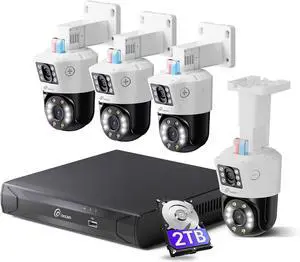 Loocam Dual-Lens 4K PoE Security Camera System, 4pcs Pan/Tilt CCTV Wired PoE IP Camera Outdoor Indoor, AI Person/Vehicle, Spotlight Siren, Color Night Vision, 8CH 8MP NVR with 2TB HDD