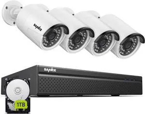 SANNCE 8CH 4K PoE Home Security Camera System, 4pcs Wired 3MP Outdoor PoE Cameras, 3MP 8-Channel NVR Security System with 1TB HDD for 24/7 Recording, Smart Playback, Instant Email Alert with Images