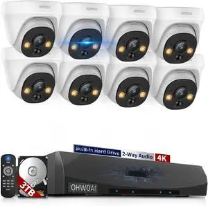 (4K/8.0 Megapixel & 130° Ultra Wide-Angle) PoE Dome Outdoor Home Security Camera System with Audio, Wired Outdoor Surveillance IP Cameras System with 6TB HDD