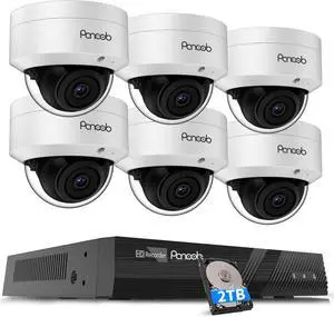 PoE Security Camera System, 6X Wired 5MP IK10 Vandal-Proof PoE Dome Cameras Outdoor with Person Detection, 100ft IR Night Vision, Remote Access, 4K 8 Channel NVR 2TB HDD, PD54A0608-5M2