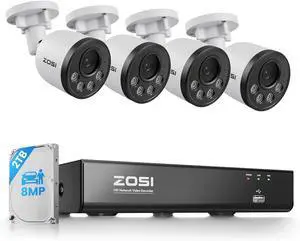 ZOSI 4K PoE NVR Security Camera System,4pcs 8MP Weatherproof Wired PoE Cameras,Smart Person Vehicle Detection,One-Way Audio,People Counting,H.265+ 4K/8MP 8CH NVR with 2TB HDD for Home 24/7 Recording