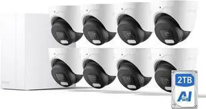 4K PoE Seucrity Camera System, 8pcs 8MP PoE Turret Cameras for Home Indoor/Outdoor Use with AI Detection, 24-7 Recording, Color Night Vision,No Subscription,IP67, 4K 8CH NVR with 2TB HDD(N2838D)