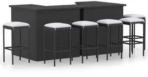 vidaXL Garden Bar Set Black Poly Rattan, Powder-coated Steel Large