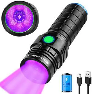50W 365nm Rechargeable UV Flashlight, 3 Modes LED UV Light, High Power Black Light Flashlight with Filter for Pet Urine Detection, Scorpion Finding, Leak Detector, Money & ID VerificationBrand: KaitoColor: BlackSpecifications: Grace Marci, Black, GM-UV-008, false, true, 0.24 kilograms, 4.3942 L x 4.8006 W x 14.1986 H centimetersFeatures: LIGHTWEIGHT & PORTABLEModel #: 533653731274