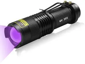 Specifications: blacklight flashlight, Dog/Cat Urine Detection, Find Scorpions, Find Bed Bug, 5 hours, Aluminum, alkaline, 3, 5.8 L x 1.4 W x 2.2 H inches, 0.36 pounds, water_resistant, 1 year warranty., ESCO LITE, Flashlight Black Light