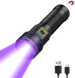 2-in-1 Powerful Blacklight LED Flashlight - UV&High Lumens Tactical Rechargeable Flash Light, 7 Modes, 18H Long Lasting, Super Bright Waterproof Detector for Pet Urine Curing Resin Camping Emergencies