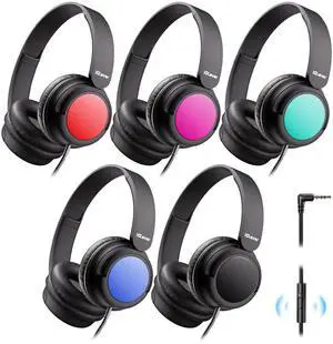 iClever Kids Headphones with Mic for School Students K-12 & Teachers, Durable PP Material, Tangle Free, Kid On Ear Head Phones with Cord Multiple Folding Options Suitable for Home/Travel, Bulk 5Pack