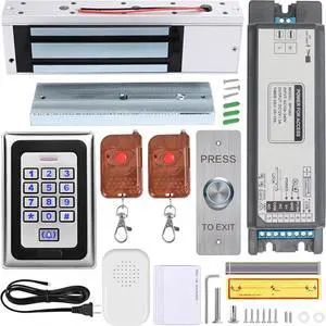 Biometric Access Control System with Fingerprint, Keypad, RFID, Infrared Exit Button, 1200lb Magnetic Lock, LCD Display, USB Download, Attendance Tracking, Timed Unlock,for Office, Store, Home