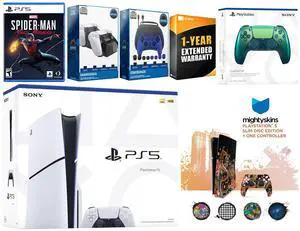 Sony Playstation 5 Slim Disc with Spider-Man: Miles Morales, Extra Chroma Teal Controller, Gamer Kit, Charge Dock and MightySkins Decal Voucher + 1 Year CPS Extended Warranty