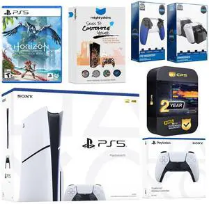 Sony Playstation 5 Slim Disc with Horizon Forbidden West, Extra White Controller, Gamer Kit, Charge Dock and MightySkins Decal Voucher + 2 Year CPS Extended Warranty