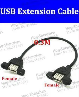 Brand  30cm USB 2.0 Female to USB  Female Panel Mount Extension Adapter Cable 50pcs