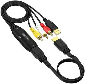 RCA to HDMI Converter, AV to HDMI Converter for TV/PC/N64/Wii/PS1/PS2/PS3/STB/Xbox/VHS/VCR/Blue-Ray DVD Players, with 3.3ft RCA and HDMI Cables