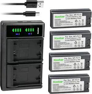 Kastar 4-Pack NP-FC11 Battery 3.7V 1100mAh Replacement for Sony NP-FC11 NP-FC10 Battery, Sony BC-VC10 Charger, Sony Cybershot DSC-P8L, Cybershot DSC-P9 Camera