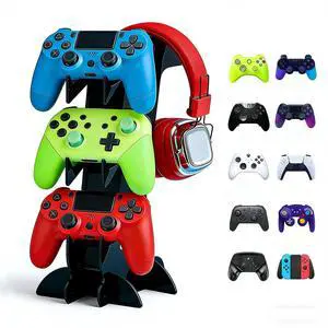 Game Controller Holder - 2 Tier Universal Stand with Headphone Holder, Navy Acrylic Display for Nintendo Switch, Xbox, PS5, PS4, Desk Mount