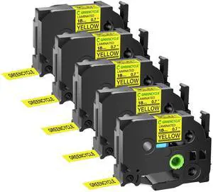 GREENCYCLE TZe-641 18mm 0.7 Laminated Yellow Tape Compatible for Brother P-Touch Black on Yellow TZ-641 TZe641 3/4 inch TZe TZ Tape for Ptouch PTD410 PTD400 PTD610BT PTD600, 5 Pack