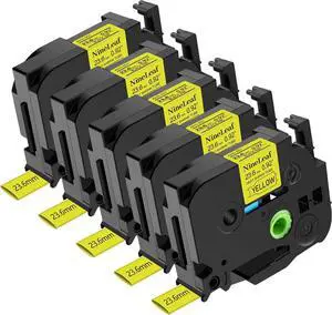 NineLeaf 5PK Compatible for ptouch HSe-651 HSe651 HS-651 HS651 23.6mm 0.92 Black on Yellow Heat Shrink Tubes for PT-E500 PT-520 PT-E550W PT-D600 Label Maker Tapes