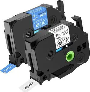 Compatible for Brother P-Touch Label Maker Tape 10PK TZe-251 TZe251 TZ-251 Black on White 24mm 0.94 inch and 2PK TZe-541 TZe541 Black on Blue 18mm 0.7 inch Laminated TZe TZ Tape