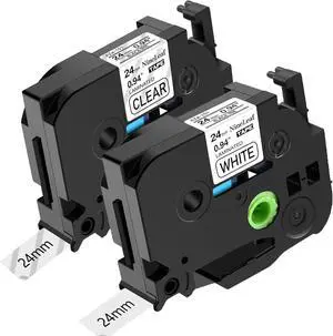 5x TZe-251 and 5x TZe-151 24mm Label Maker Tape Compatible with Brother P Touch TZ Tape 24mm 0.94 Laminated Work with PT-D610BT D600 700 P710BT PTP750W, TZe251 Black on White and TZe151 Black on Clear