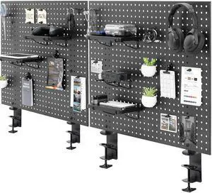 VIVO Dual Steel Clamp-on 60" x 24" Desktop Pegboard, Magnetic Privacy Panel