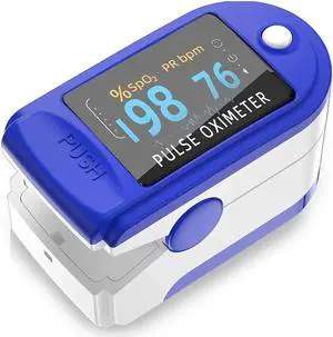 Larger Display Blood Oxygen Monitor with Batteries and Lanyard Included Fingertip Pulse Oximeter Color: Navy Blue