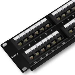 Rapink Patch Panel 48 Port Cat6 10G Support, Network Patch Panel UTP 19-Inch, Wallmount or Rackmount 1U Ethernet Patch Panel Punch Down Block for Cat6, Cat5e, Cat5 Cabling