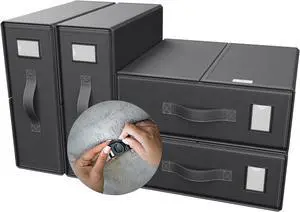 Cappy-Barra 4 Pack Bed Sheet Organizer (Gray), Storage Boxes for Queen & King Bedding, Clothes & Towels, Foldable Underbed Container with Handle & Label, Linen Closet Organization