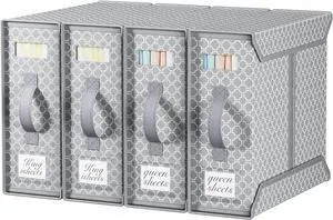 Bed Sheet Organizers - 4 Pack(Queen or King Size), Foldable Sheet Cube Storage Container Linen Closet Organizers, Duvet Covers and Pillowcases Storage Box for Bedding Blankets Towels (4 PCS)