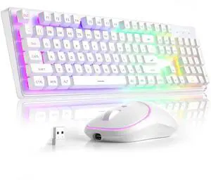 Wireless Keyboard and Mouse Combo, RGB Backlit, Rechargeable & Light Up Letters, Full-Size, Soft Typing, Sleep Mode, 2.4GHz Quiet Keyboard Set for Mac, Windows, Laptop, PC, Trueque (Black)- Brand: Trueque
