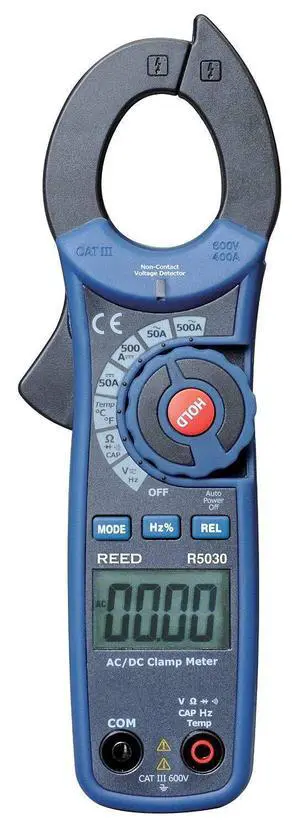 REED Instruments R5030 True RMS AC/DC Clamp Meter with Temperature and Non-Contact Voltage Detector, 500A, Black