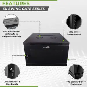 NavePoint 6U Server Cabinet Wall Mount Rack Enclosure Includes 2 Fans, Locking Glass Door, Removable Side Panels  6U Network Cabinet 17.7 Deep, 19 Inch Server Rack for IT and A/V Equipment