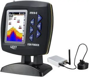 Portable Rechargeable Fish Finder Wireless Sonar Sensor Fishfinder Depth Locator with Fish Size, Bottom Contour, Color LCD Display