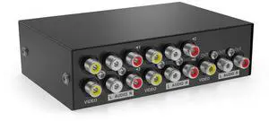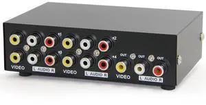 4 Way AV RCA Switch, 4 in 1 Out Composite Video L/R Audio Switcher Selector Box for DVD Player, SNES, N64, PS2/3 Game Consoles
