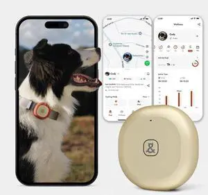 GPS + Bluetooth Pet Tracker for Cats & Dogs RealTime Tracking, Virtual Fence, IP67 Waterproof, Up to 60Day Battery, Health Monitoring, iOS/Android Subscription Required (Gold)