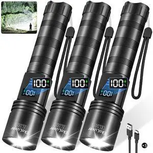 Specifications: Adjustable Focus - from wide to narrow beam,long range 3280ft, Adjustable Light Modes - 5 Modes, High Power - high lumens 100000, Rechargeable - USB C Input & Output, 10 hours, Metal, lithium_ion, 3, 18.8 L x 5 W x 3.5 H centimeters, water_resistant, 1 year replacement., Esgofo, X16 Rechargeable Flashlights