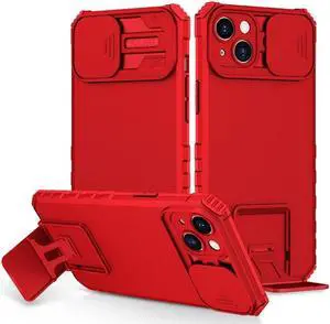 Camera Privacy Cover Hybrid Case with Kickstand for iPhone 14 Plus - Red