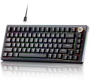 T81E Mechanical Gaming Keyboard, 75% Gasket Mount Wired Keyboard with Knob & 5-Layer Sound Dampening, Hot-Swappable, RGB Backlit, 82 Keys for Windows/Mac/Linux - Black