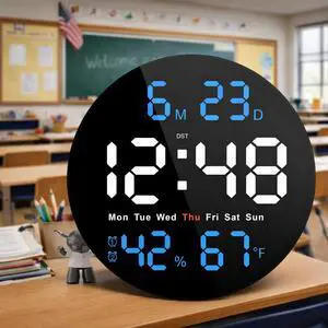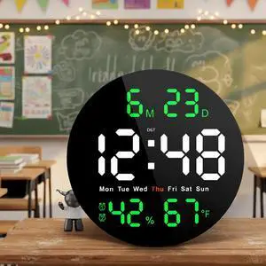 Large Digital Clock for Classroom, Digital Classroom Clocks for Teachers, 10" Round LED Clock with Large DisplayDate, Countdown Timer, Remote Control, Temperature, Electric (Green)