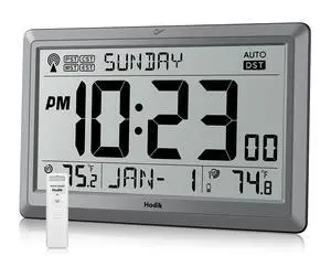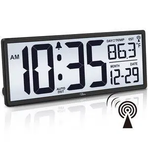 14.5'' Atomic Clock with Backlight, Large Digital Wall Clock Battery Operated, Large Display with Temperature and Date, Easy to Read and Set Digital Wall Clock, Auto DST