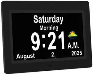 Digital Calendar Dementia Alarm Clock with Day and Date for Elderly - 15 Alarms 5 Colors Display Large Display Alzheimers Clock Large Digital Clock for Seniors (7in Black)